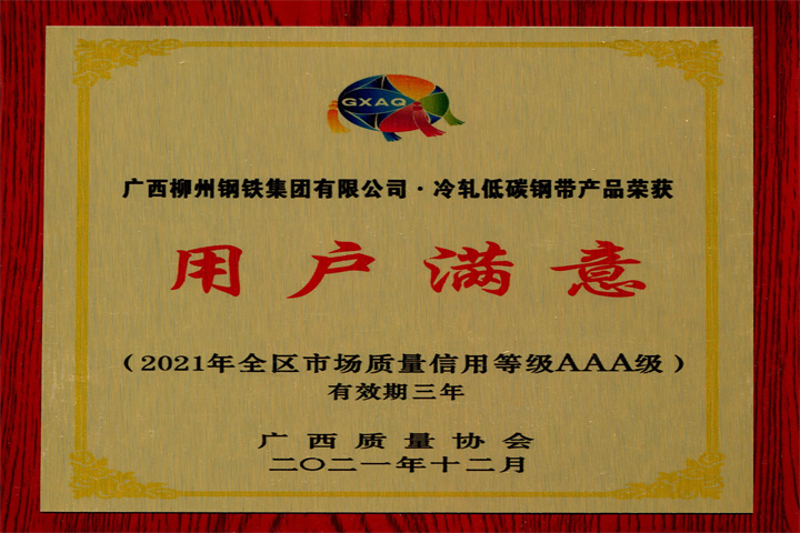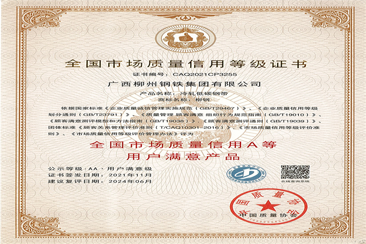 全國市場質(zhì)量信用AA級用戶滿意產(chǎn)品2021-冷軋低碳鋼帶