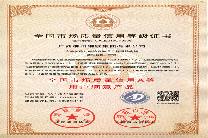 全國用戶滿意產(chǎn)品2019-船用鋼