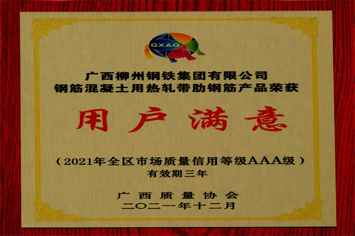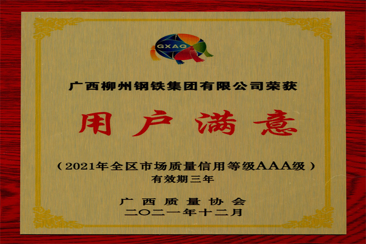 全區(qū)用戶滿意產(chǎn)品證書